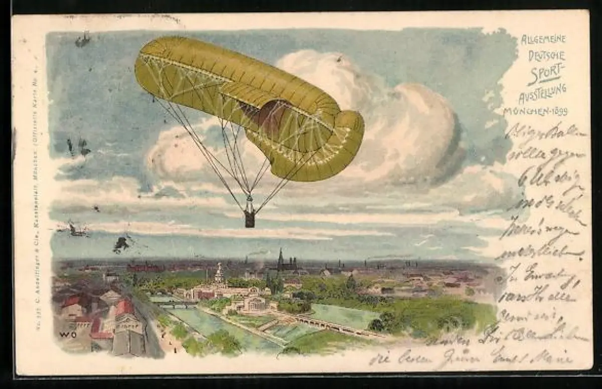 Lithographie München, Allgemeine Deutsche Sport-Ausstellung 1899, Ballon
