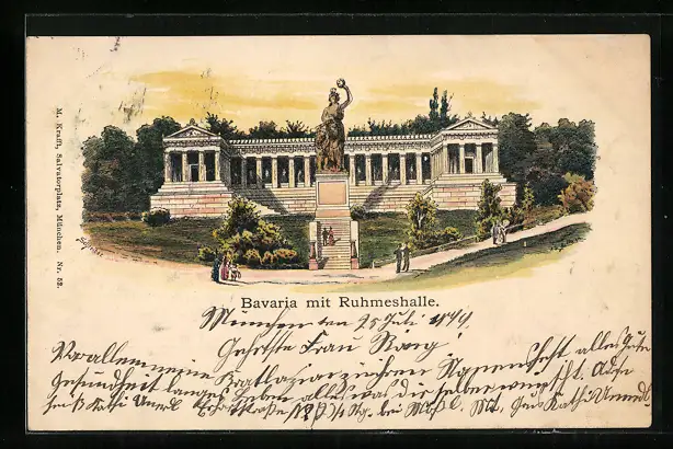 Lithographie München, Bavaria mit Ruhmeshalle