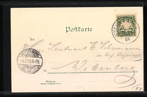 gelaufen 1900, restaurierter Einriss unten mittig, guter Zustand