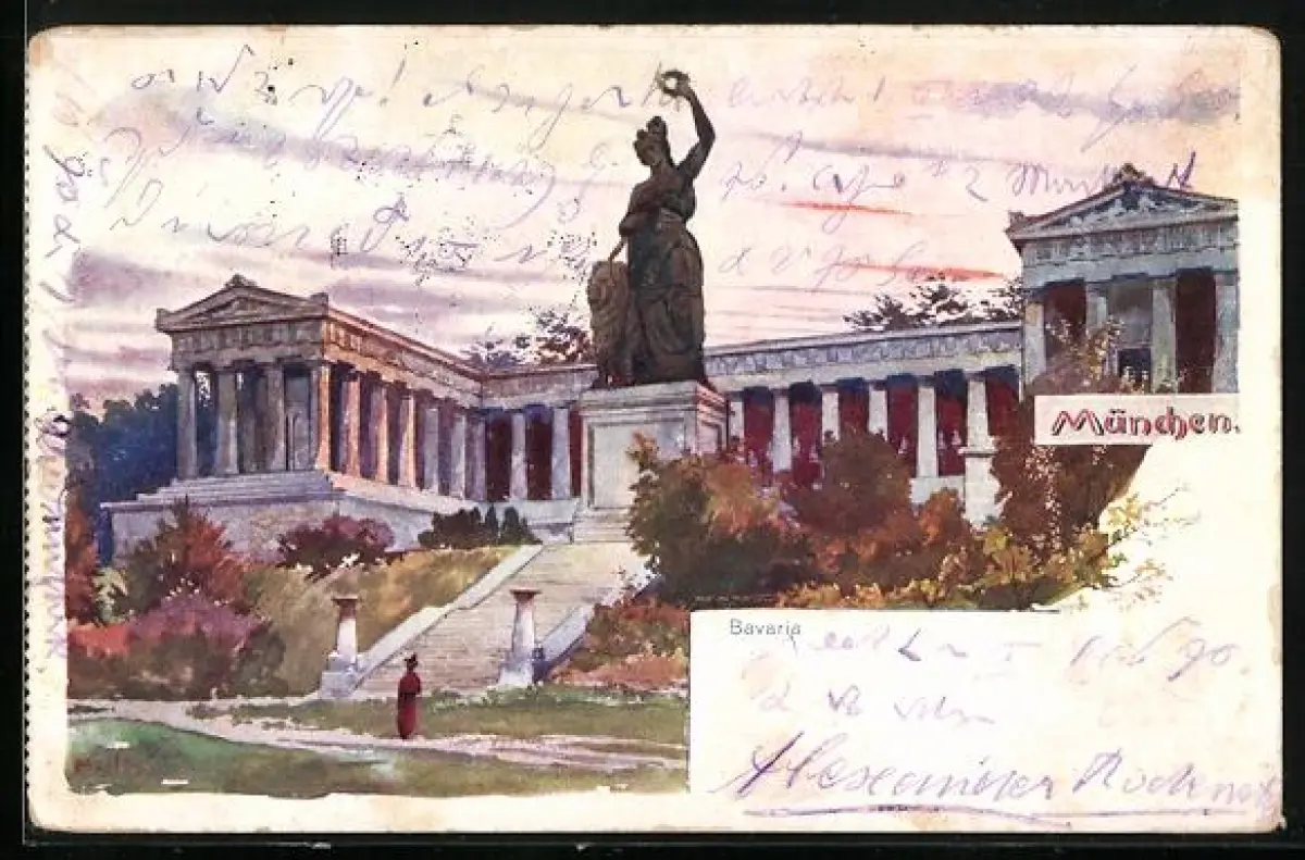 Lithographie München, Bavaria und Ruhmeshalle