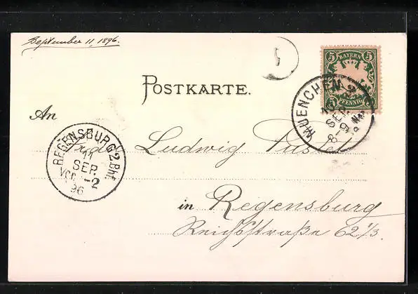 gelaufen 1896, Eckknick oben li., guter Zustand