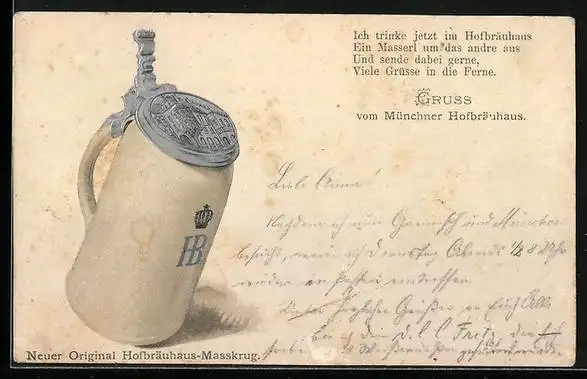 Lithographie München, Münchner Hofbräuhaus, Bierkrug