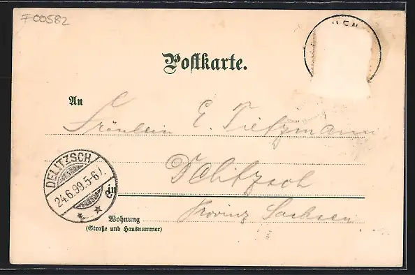 gelaufen 1899, Briefmarke entfernt, rückseitig Oberflächenschaden, Stempelspur, guter Zustand