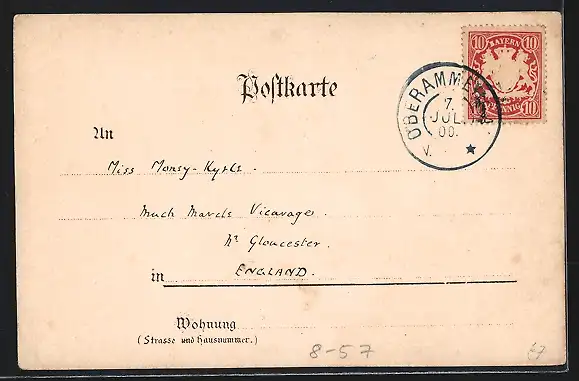 gelaufen 1900, Eckknick rechts oben, guter Zustand