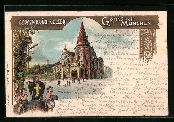 Lithographie München, Partie am Löwenbräu-Keller, Münchener Kindl