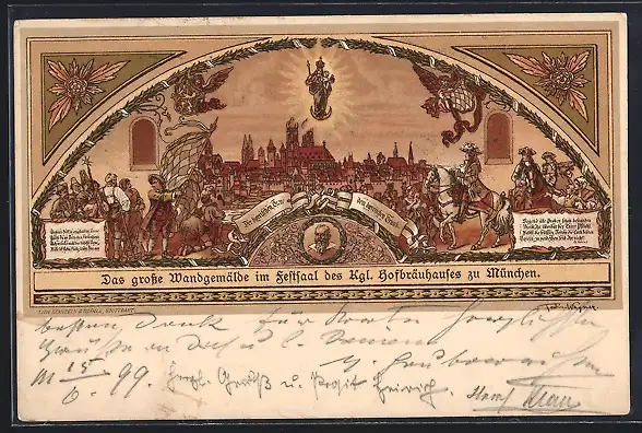Lithographie München, das grosse Wandgemälde im Festsaal des Kgl. Hofbräuhauses