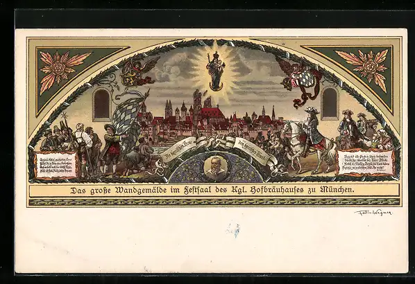 Lithographie München, das grosse Wandgemälde im Festsaal des kgl. Hofbräuhauses