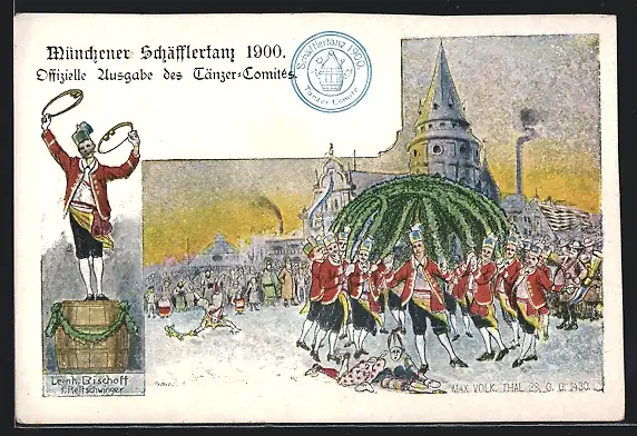 Lithographie Münchener Schäfflertanz 1900, Offizielle Ausgabe des Tänzer-Comités, Reifschwinger Leonh. Bischoff