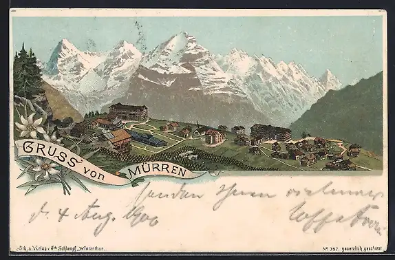 Lithographie Mürren, Totalansicht