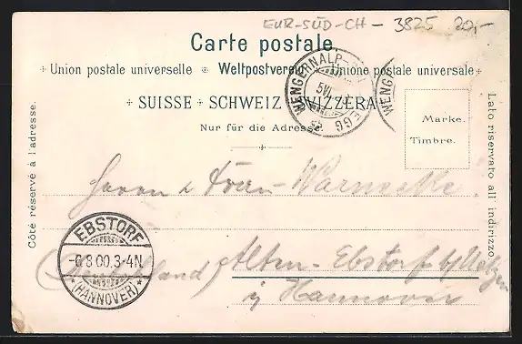 gelaufen 1900, Briefmarke entfernt, Eckknicke unten, guter Zustand