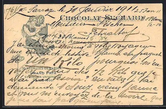 Lithographie Mutter und Tochter naschen Chocolat Suchard