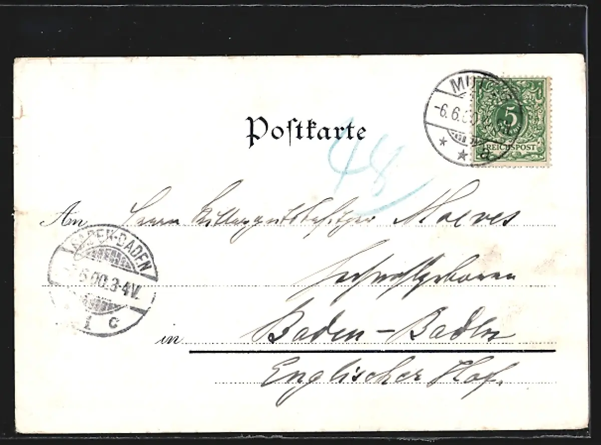 gelaufen 1900, Einrisse rechts oben u. mittig, Eckknick oben rechts