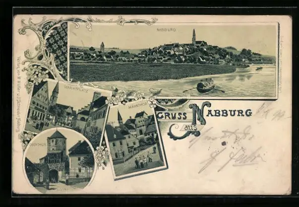 Lithographie Nabburg, Marktplatz, Obertor, Mähntor
