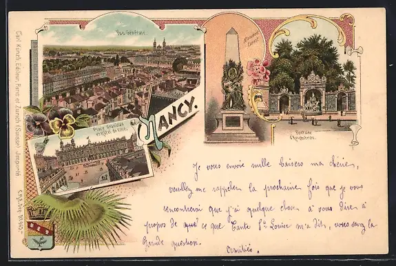 Lithographie Nancy, Monument Carnot, Fontaine d`Amphitrite