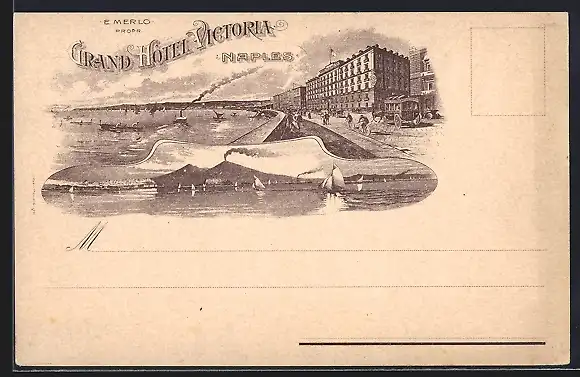 Lithographie Naples, Grand Hotel Victoria, E. Merlo, propr.
