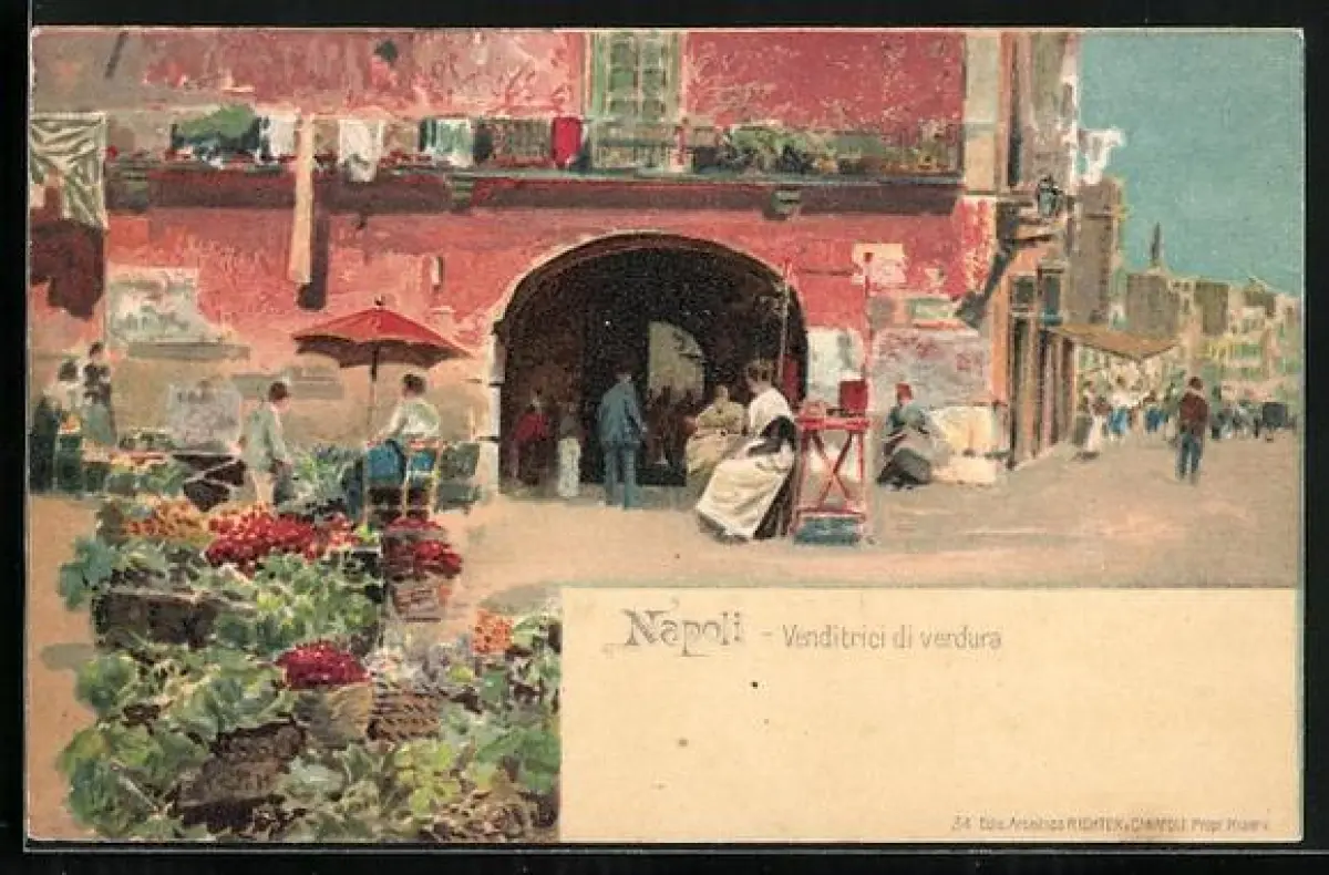 Lithographie Napoli, Venditrici di verdura, Strassenhändler