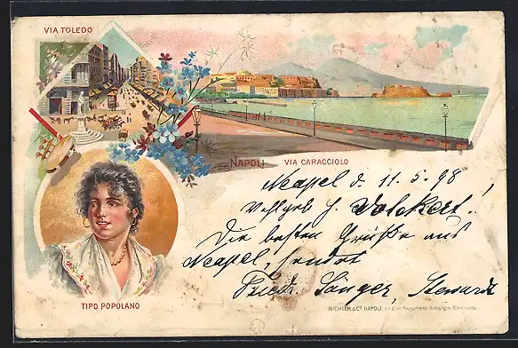 Lithographie Napoli, Via Caracciolo, Via Toledo, Tipo Popolano