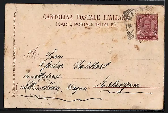 gelaufen 1898, Einriss unten re., Eckknick re. unten u. oben li., guter Zustand