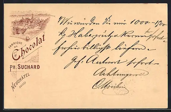 Lithographie Neuchatel, Chocolat Ph. Suchard, Vue générale