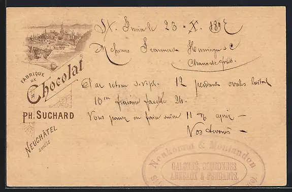 Lithographie Neuchatel, Chocolat Ph. Suchard, Vue générale