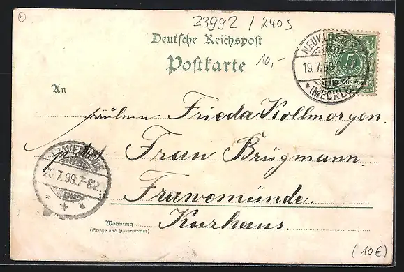 gelaufen 1899, Eckknicke li. oben und re. unten, Abriebspur re. unten, Bugspur li. mittig