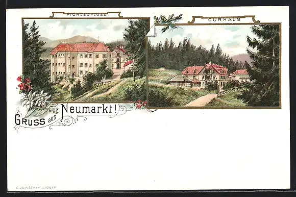 Lithographie Neumarkt in der Steiermark, Pichlschloss, Curhaus