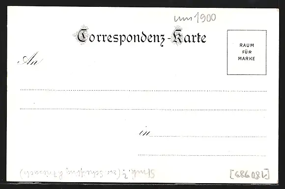 Personenbezogene Daten auf der Rückseite der Karte wurden durch blauen Textmarker unkenntlich gemacht. Die blauen Stellen sind auf die Vorderseite durchgeweicht und wirken sich negativ auf das Postkartenfoto aus