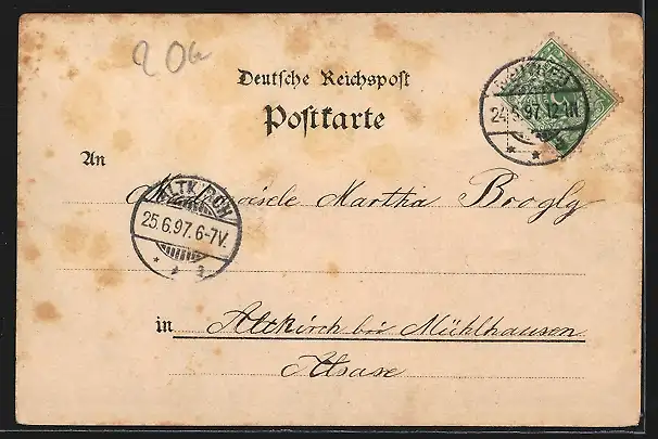 gelaufen 1897, Eckknicke oben, guter Zustand