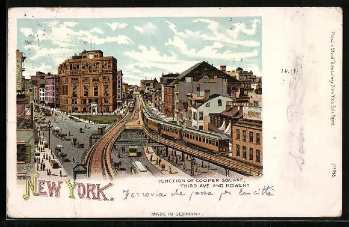 Lithographie New York, NY, Junction of Cooper Square, Third Ave and Bowery
