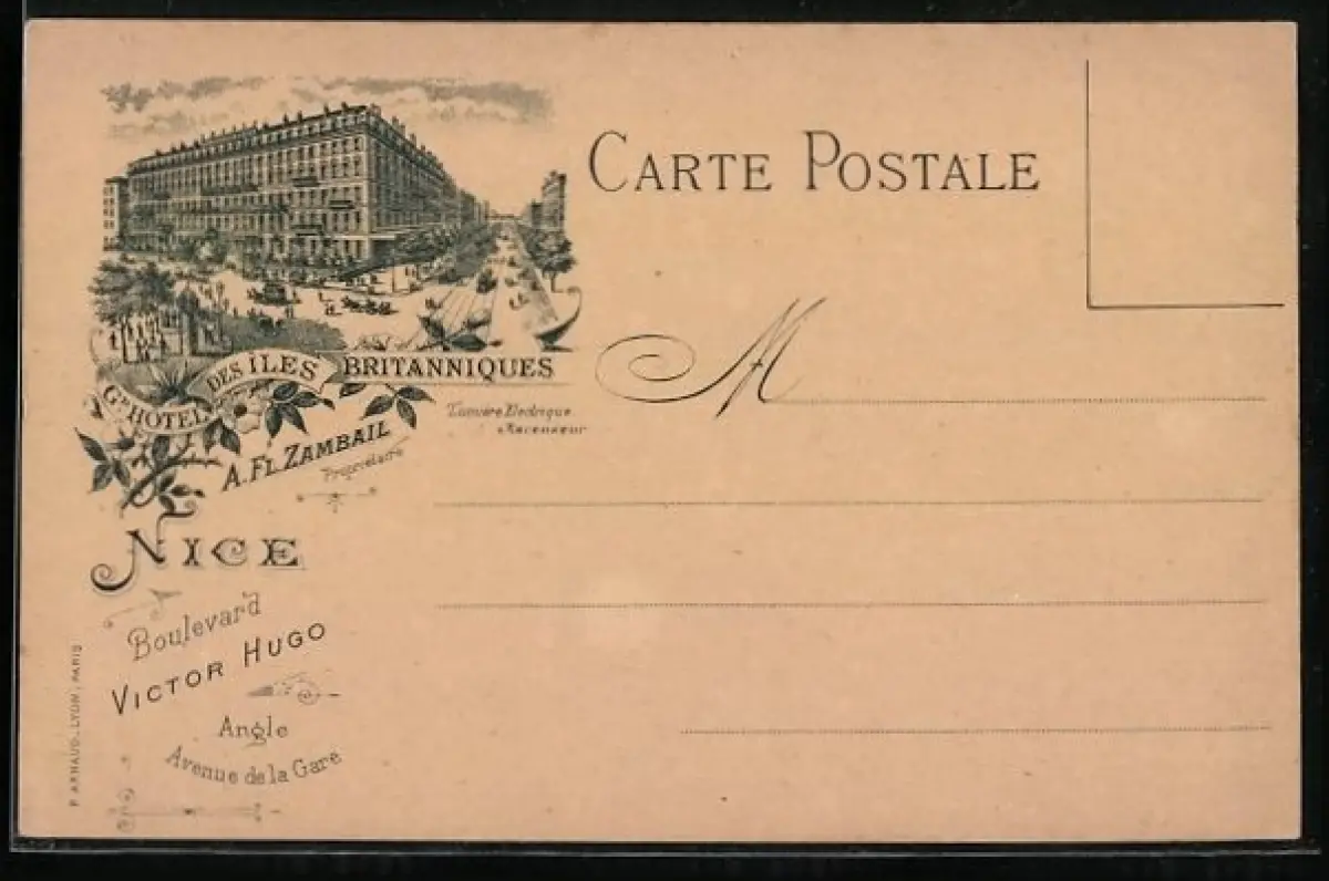 Lithographie Nice, Gd. Hôtel des Îles Britanniques, A. Fl. Zambail Propr., Boulevard Victor Hugo