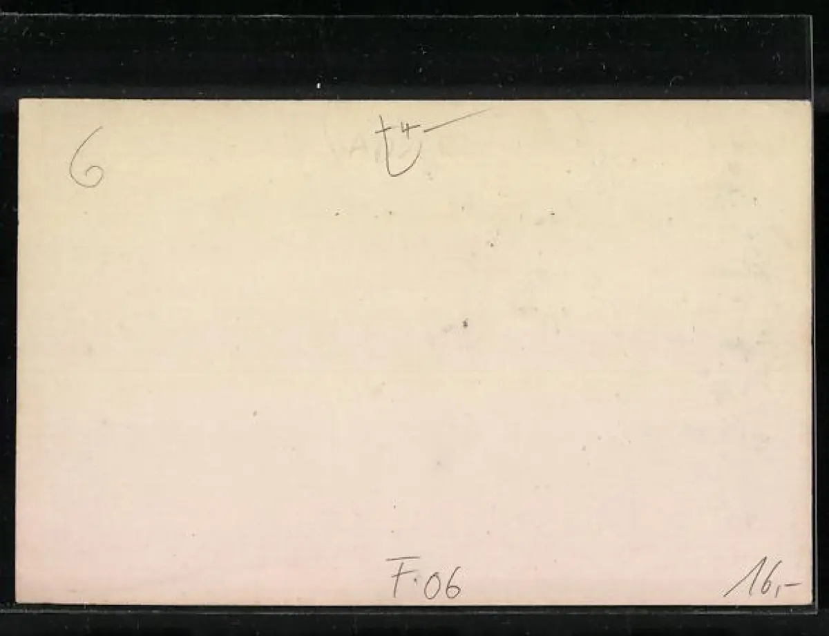 Personenbezogene Daten auf der Rückseite der Karte wurden durch blauen Textmarker unkenntlich gemacht. Die blauen Stellen sind auf die Vorderseite durchgeweicht und wirken sich negativ auf das Postkartenfoto aus