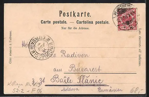 gelaufen 1898, Eckknick re. unten, guter Zustand