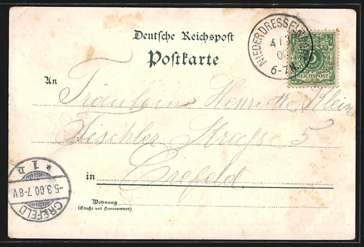 gelaufen 1900, Eckknick oben rechts, guter Zustand