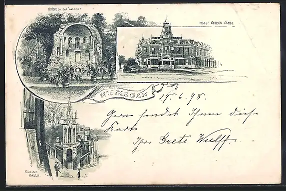 Lithographie Nijmegen, Hotel Keizer Karel, Ruine op het Valkhof, Klooster