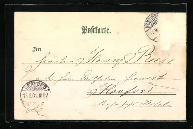 gelaufen 1901, Briefmarke entfernt, rückseitig Oberflächenschaden, guter Zustand