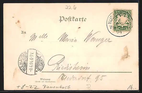 gelaufen 1904, Bugspur re. unten, guter Zustand