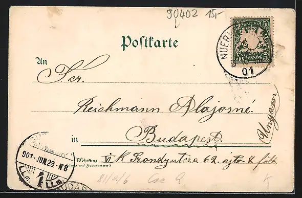 gelaufen 1901, Ecken bestoßen, guter Zustand