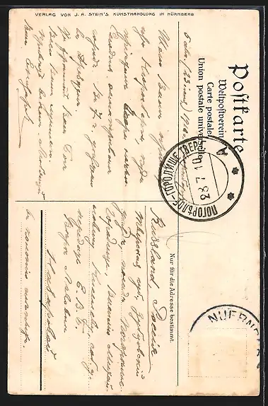 gelaufen 1910, Briefmarke entfernt, guter Zustand