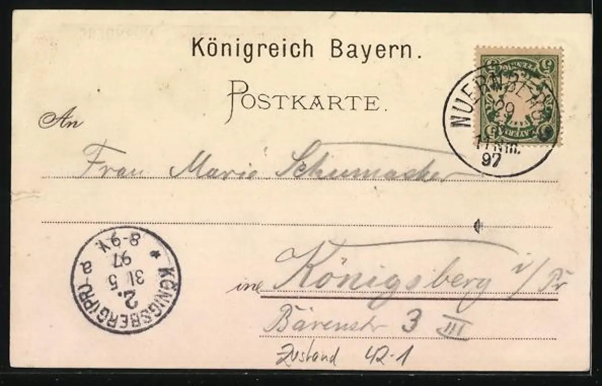 gelaufen 1897, Eckknick re. oben, Stempelspur, guter Zustand