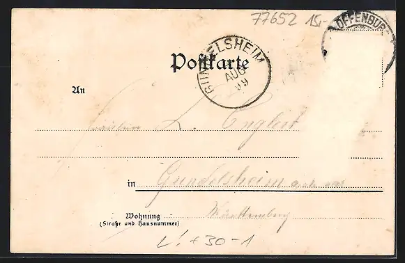 gelaufen, Briefmarke entfernt, rückseitig Oberflächenschaden, guter Zustand