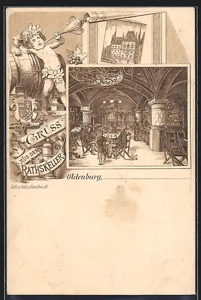 Lithographie Oldenburg / O., Gasthaus Rathskeller, Innenansicht