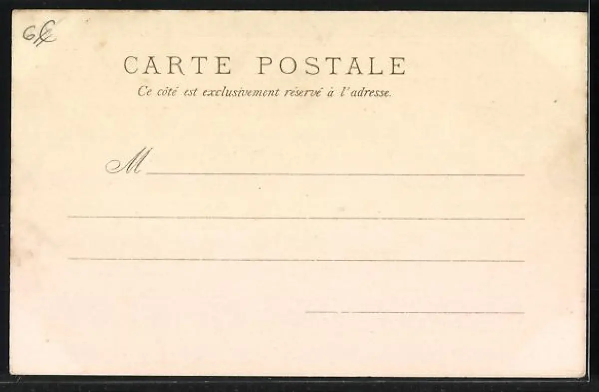 Personenbezogene Daten auf der Rückseite der Karte wurden durch blauen Textmarker unkenntlich gemacht. Die blauen Stellen sind auf die Vorderseite durchgeweicht und wirken sich negativ auf das Postkartenfoto aus