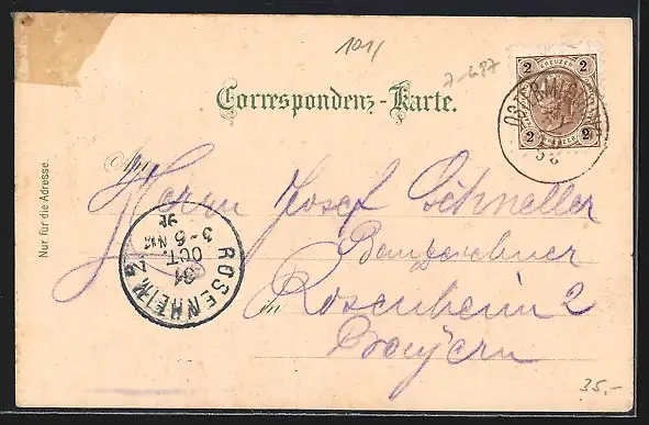 gelaufen 1898, geklebter Einriss re. oben, guter Zustand