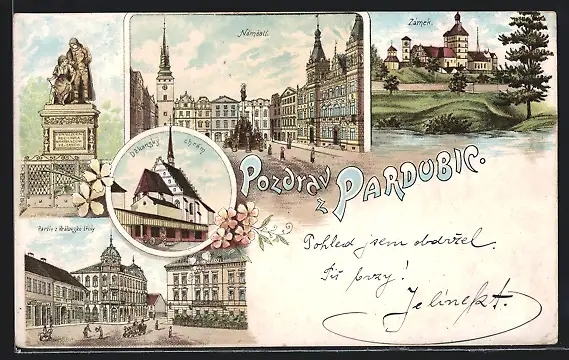 Lithographie Pardovice, Partie z Kralovske tridy, Dekansky, Zamek