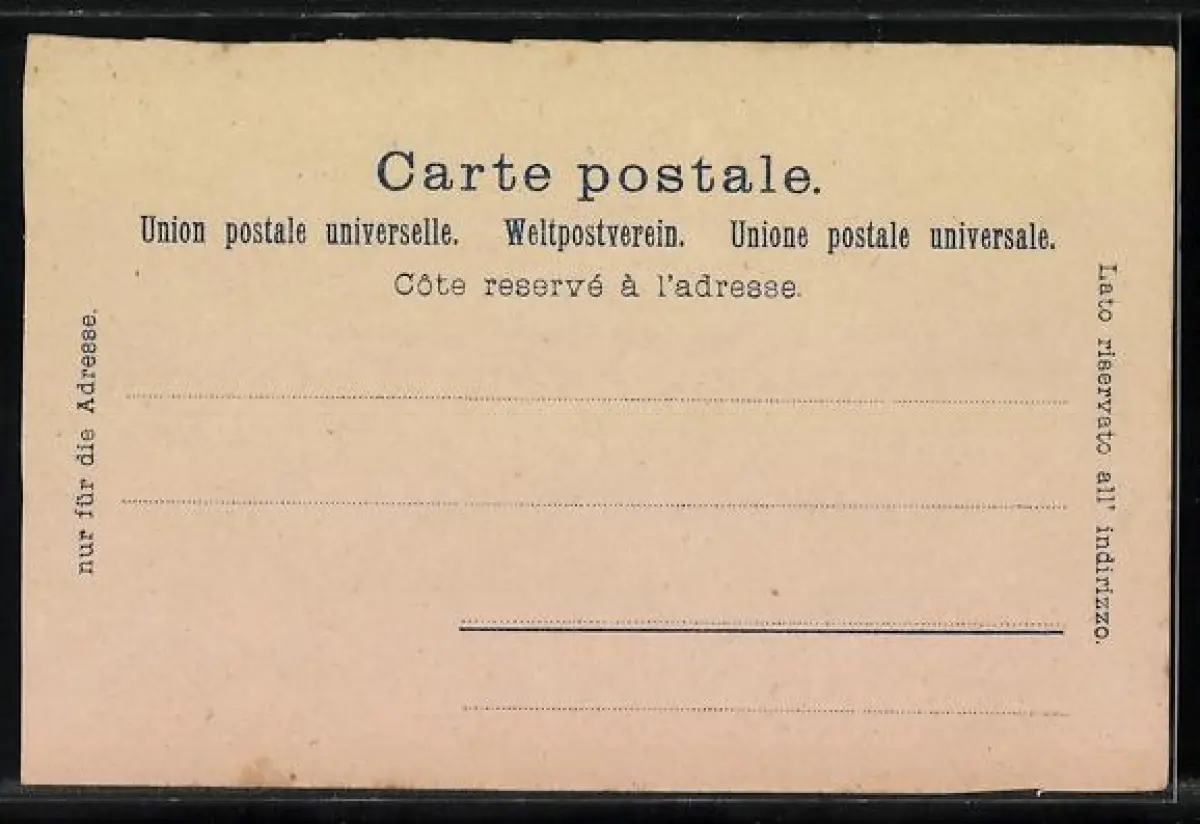 Personenbezogene Daten auf der Rückseite der Karte wurden durch blauen Textmarker unkenntlich gemacht. Die blauen Stellen sind auf die Vorderseite durchgeweicht und wirken sich negativ auf das Postkartenfoto aus