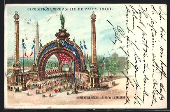 Lithographie Paris, Exposition Universelle de Paris 1900, Entrée Monumentale de la Place de la Concorde