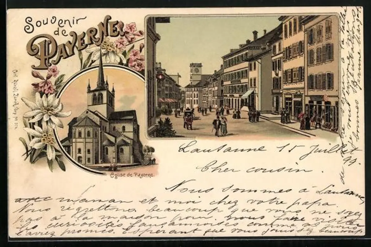 Lithographie Payerne, Eglise de Payerne, Strassenpartie