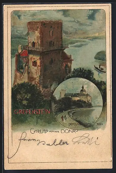 Lithographie Persenbeug / Donau, Ruine Greifenstein und Schlossansicht