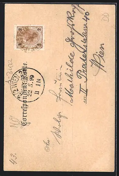 gelaufen 1899, kleiner Einriss re. unten, guter Zustand