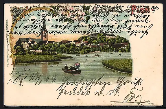 Lithographie Plön, KleinerPlöner See mit Kirche